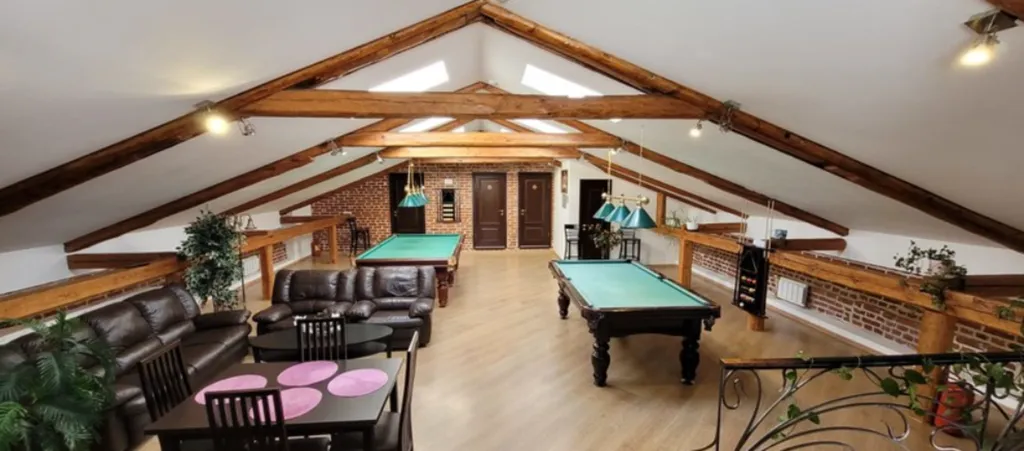 К услугам гостей в главном корпусе – просторный биллиардный зал, зона отдыха с баром и ресторан на 40 персон, в зоне которого действует бесплатный wi-fi.